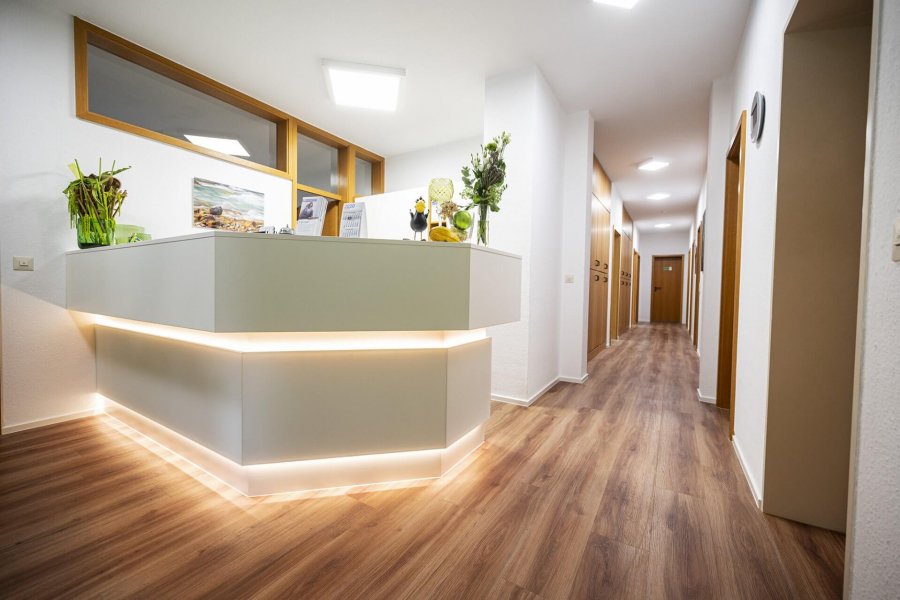 Nach einer grundlegenden Renovierung und mit einigen – für uns typischen – grünen Farbtupfer, haben wir eine Praxis mit einem freundlichen Gesamteindruck und mit kurzen Wegen für unsere Arbeitsabläufe. Auch das war uns wichtig und hat sich deutlich verbessert.